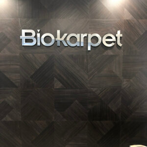 Обемните букви за Biokarpet изпълнихме от 20мм черен плексиглас, като за лице поставихме огледална неръждавейка. Така създадено, рекламното изделие е изключително ефектно и привлича вниманието на посетители и клиенти. Монтирахме буквите директно към стената с помощта на 3M двойнолепяща лента. Това от своя страна означава, че инсталацията е здрава и надеждна.