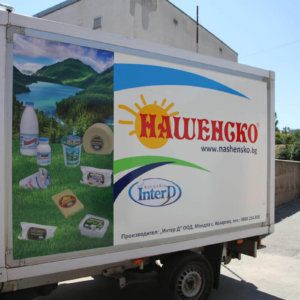 Логото на млечни продукти Нашенско и надписите с контактите на фирмата апликирахме от всички страни на товарния автомобил с фолио за режещи плотери 3M Scotchcal 50. То е подходящо за графики на повърхности с леки кривини.