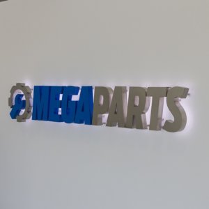 MEGAPARTS – иноксови обемни букви, светещи контражурно. Обемните букви за шоурума на MEGAPARTS в София са изработени изцяло от инокс като част от тях са боядисани с автобоя в син цвят. Монтажът е изпълнен с помощта на дистанционери, които са закрепени към стената. Лицето и страниците на буквите са направени от неръждавейка. Обемните букви са осветени със светодиоди G.O.Q. LED.